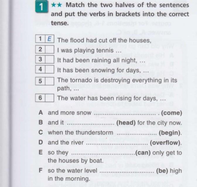 Match the two halves of the sentences and put the verbs in brackets into the correct tense.