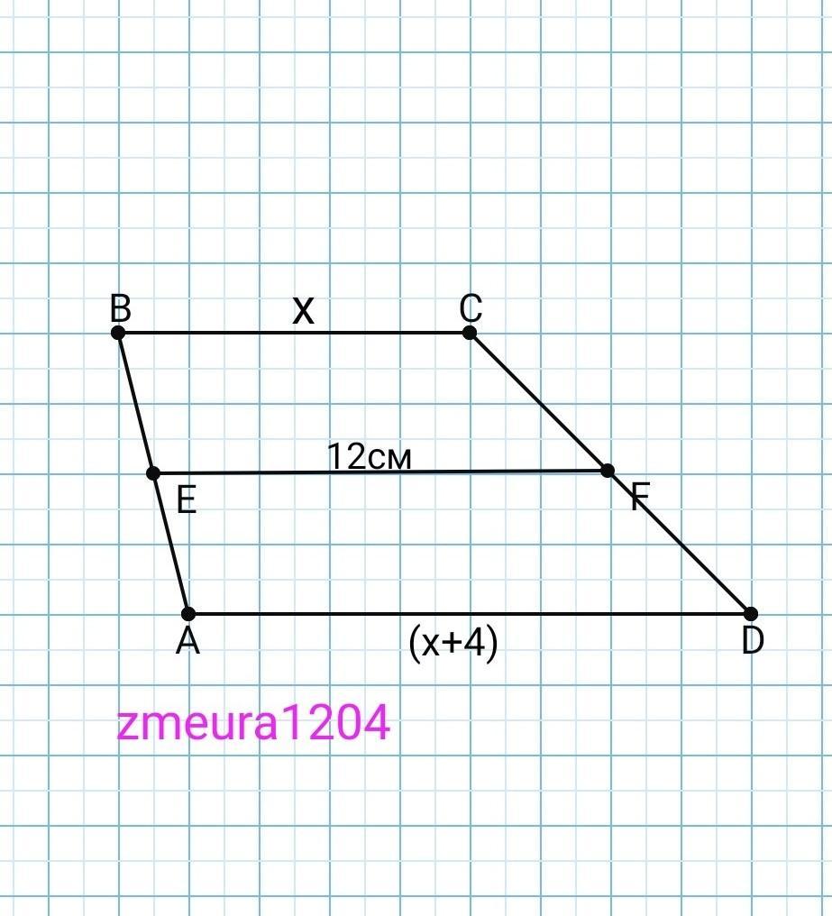 Одна основа х см, друга — (х+4) см.