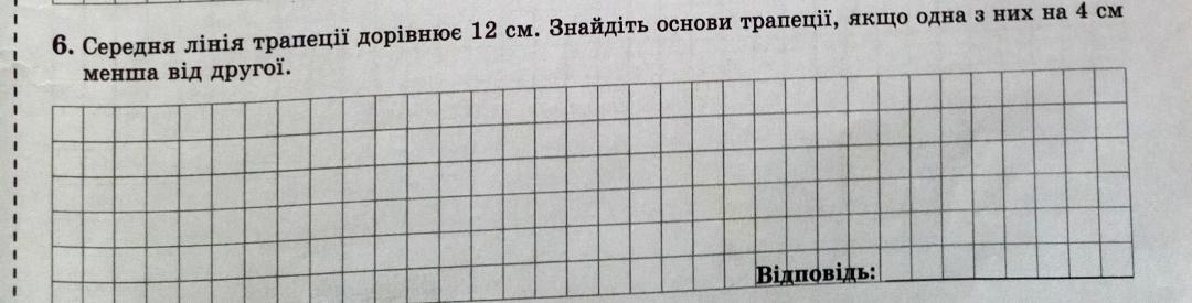 Геометрія 8 клас будьласка терміново сьогодні здавати і бажано писати спочатку накреслити трапецію потім написати дано знайти розв'язання та відповідь