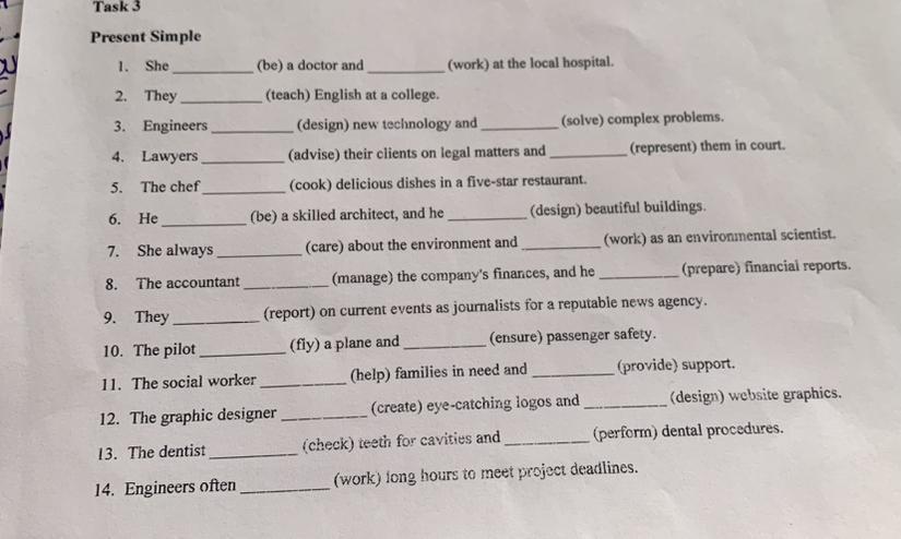 14.Engineers often work long hours to meet project deadlines.