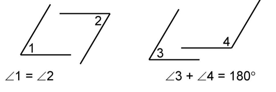 Углы с параллельными сторонами либо равны, либо их сумма составляет 180°.