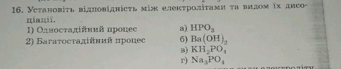 Ось відповідність між електролітами та видом їх дисоціації: