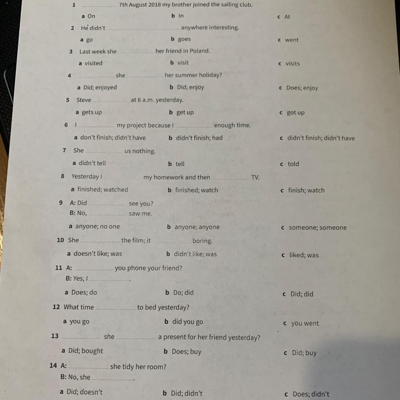 9 - a: A: Did anyone saw you? B: No, no one saw me;