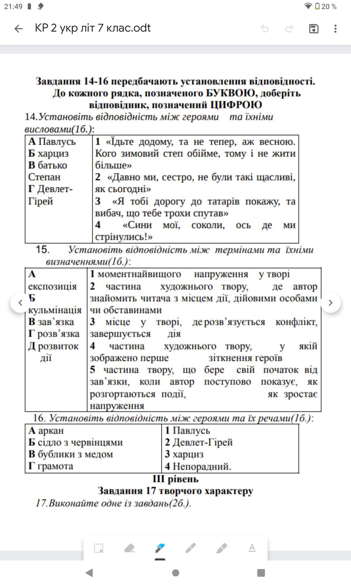 15 завдання. 1Б, 2А, 3Г, 4В, 5Д