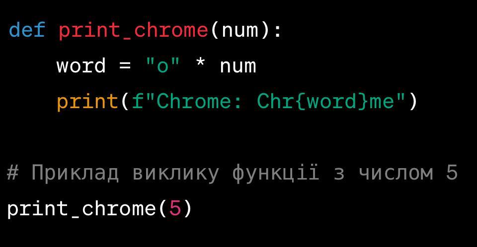 Напишите функцию, которая принимает число и печатает слово Chrome с количеством букв o, равным этому числу.