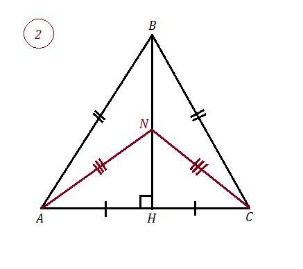 Значит все точки на отрезке ВН будут равноудалены от концов отрезка ( стороны ) АС , то есть AN = CN .