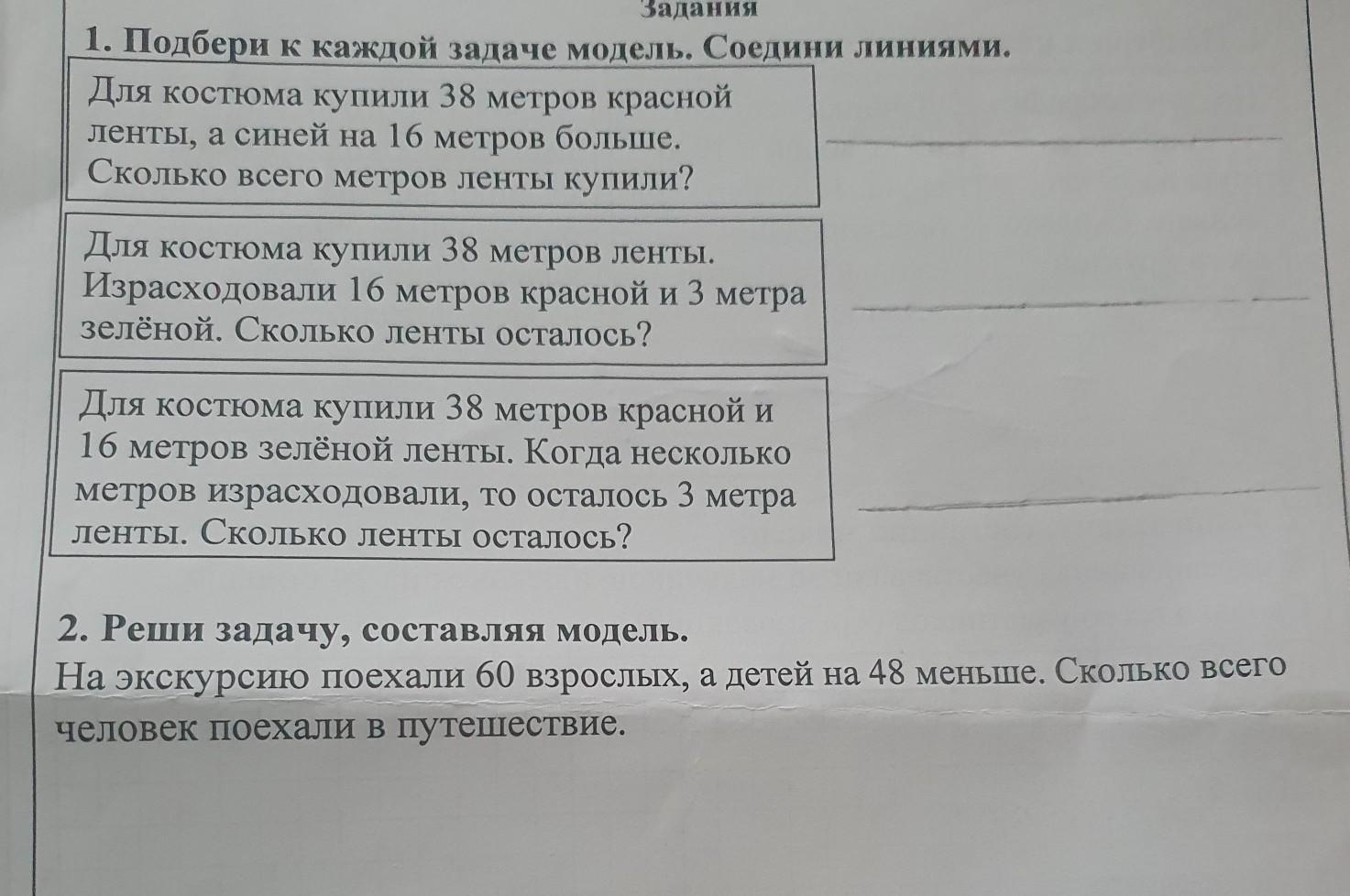 подбери к каждой залаче модель . соедини линиями 20 б нужно сосавить модель на все 4 задачи