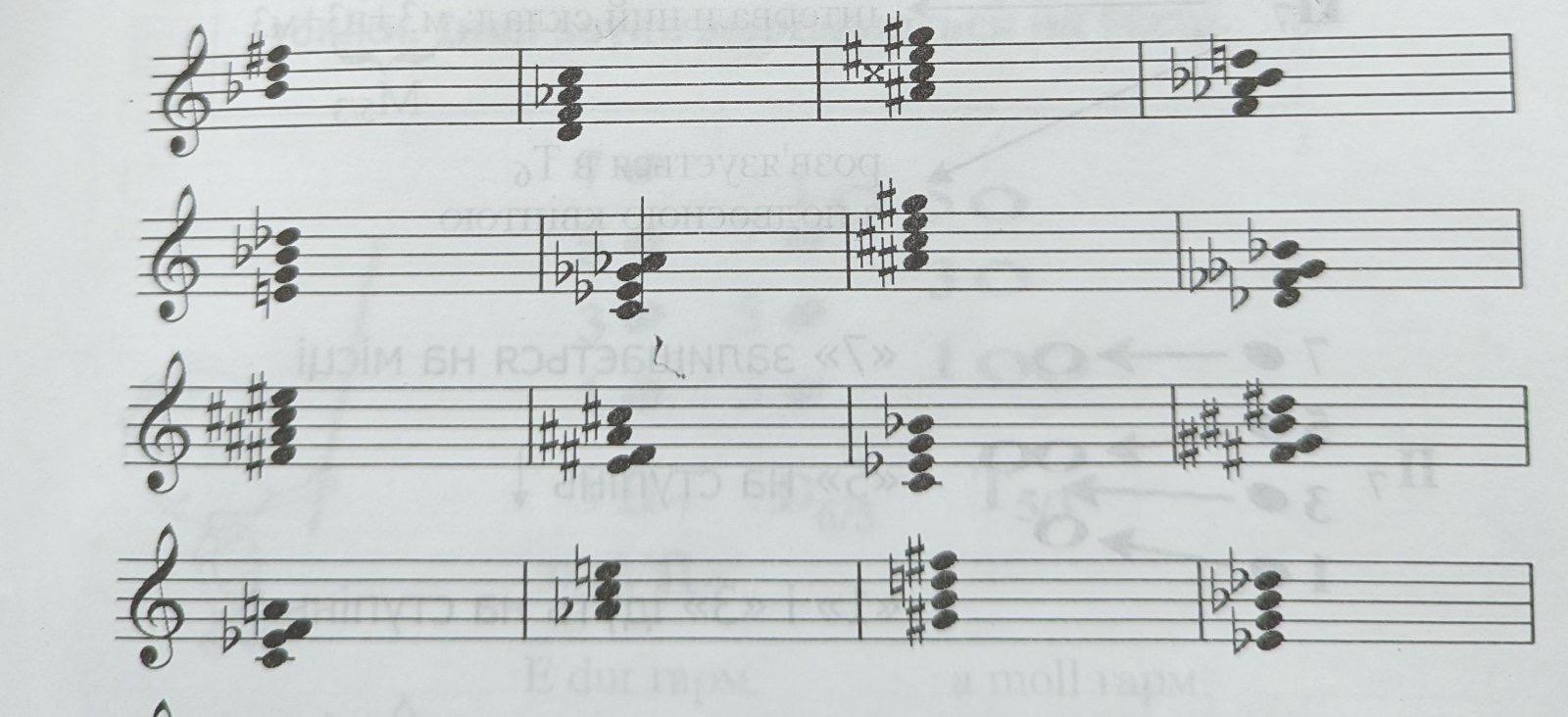 Визначити і підписати акорди . В чотиризвучних ще вказати зверху тональність (на латині)