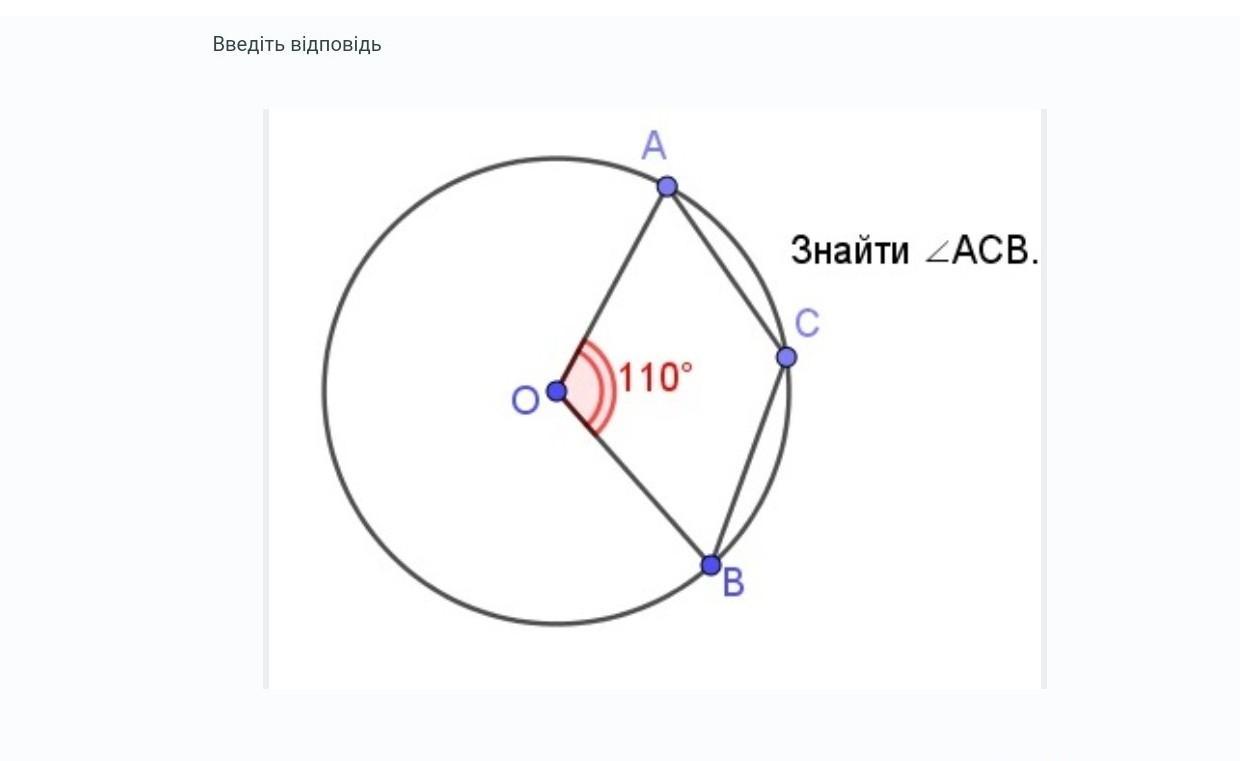 ACB опирается на ту же дугу, что и AOB, следовательно, АСВ = АОВ = 110 (см. теорему о вписанном угле)