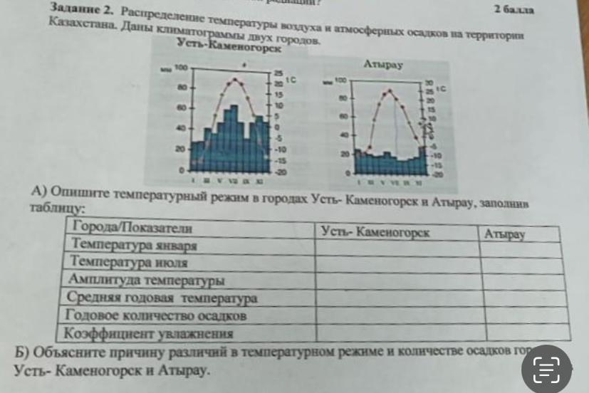 Казахстана. Даны климатограммы двух городов. Усть-Каменогорск и Атырау
