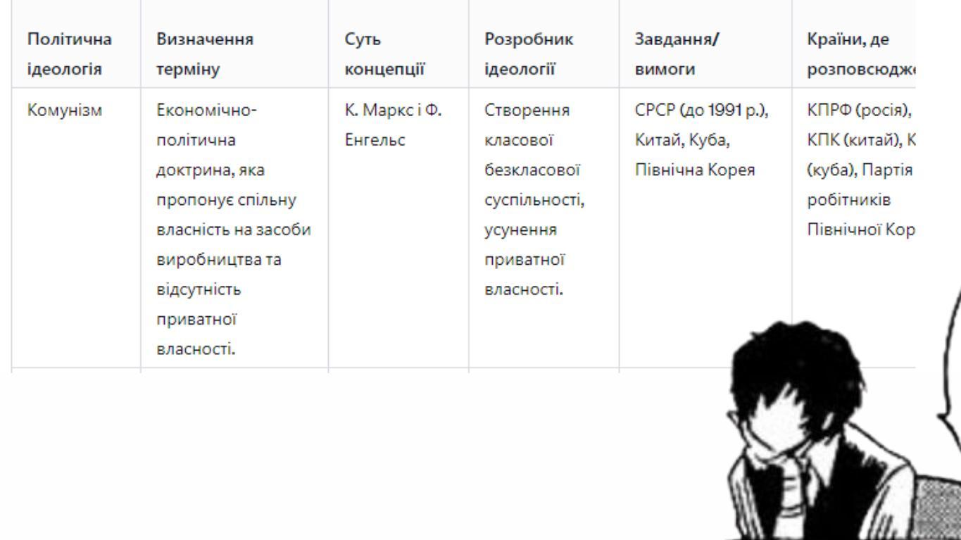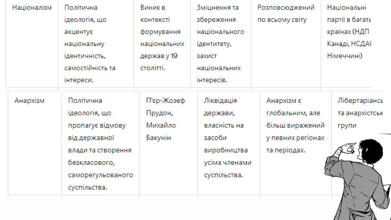 Скласти таблицю на тему «Особливості політичних ідеологій» за такими критеріями: