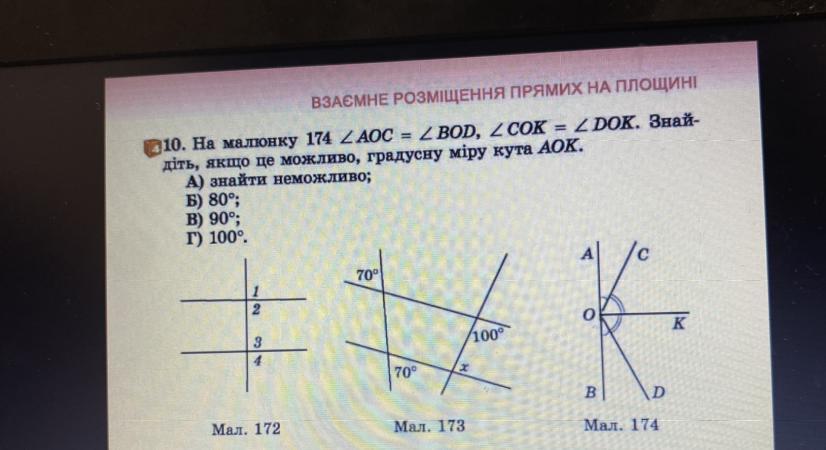 Наприклад: якщо кут AOC=25°, кут BOD=25°, кут COK=95°, кут DOK=95°