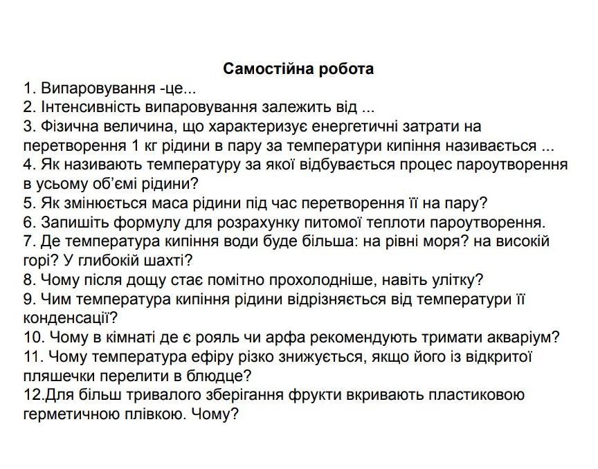 1. Випаровування — це вид паротворення на поверхні рідин, який передбачає перетворення рідких частинок у стан пари або газу