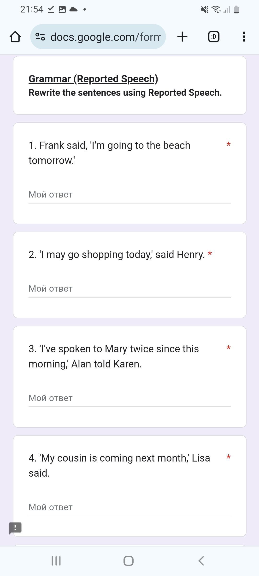На сколько я понял тут нужно было в косвенную речь переделать: