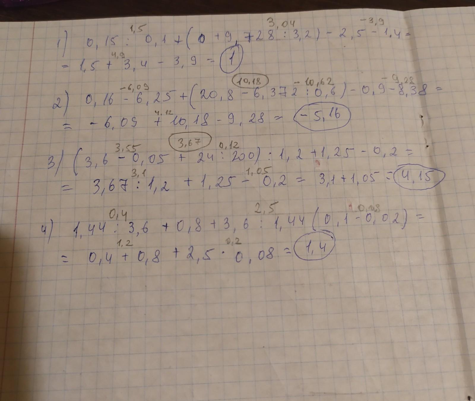 4) 1,44:3,6+0,8+3,6:1,44 (0,1-0,02).
