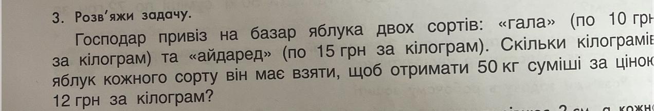 яблук кожного сорту він має взяти, щоб отримати 50 кг суміші за ціною