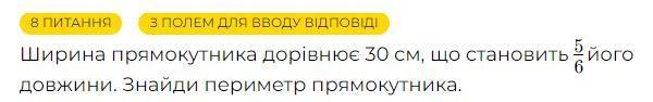 Давайте позначимо довжину прямокутника через (L). За умовою завдання маємо, що ширина прямокутника ((W)) дорівнює (30) см, що становить (5/6) довжини ((L)).