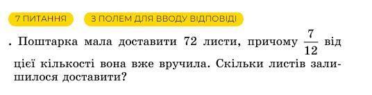 Щоб знайти кількість листів, які залишилися доставити, від загальної кількості листів (72), віднімемо кількість вже вручених (7|12).