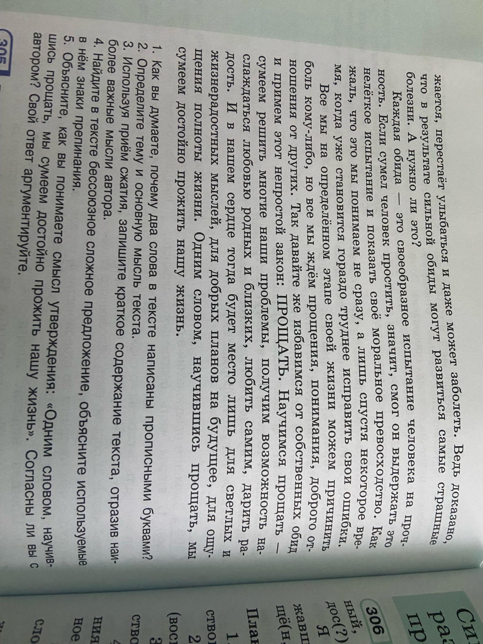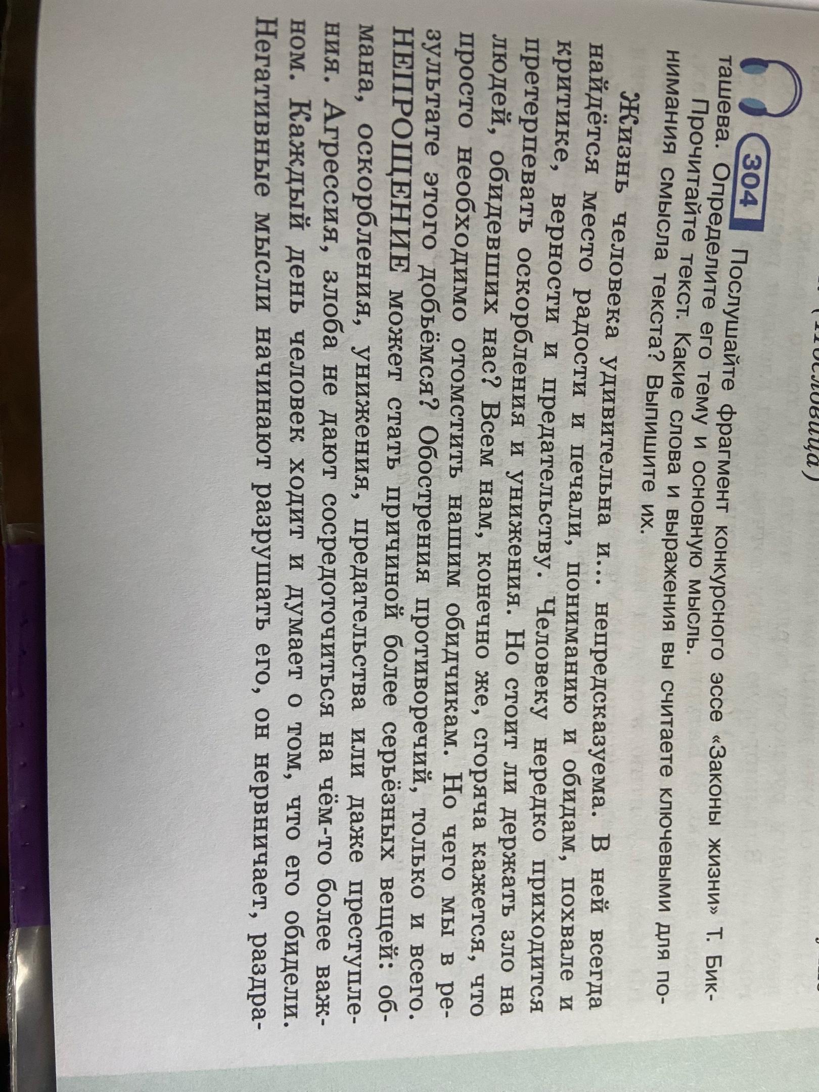 Тема "Что значит научиться прощать?" по тексту упр. 304. Объяснить значение слова "прощение". Минимум 80 слов. 1 аргумент из текста, 2 - из читательского опыта. Прошу помочь. Даю 99 баллов.