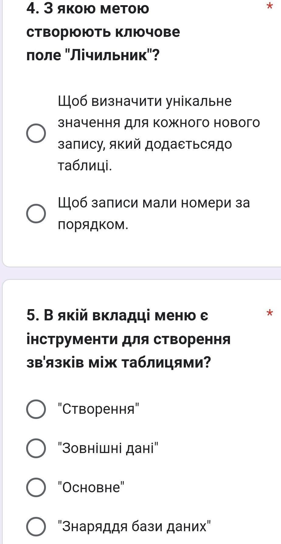 4. Щоб визначити унікальне значення для кожного нового запису який додається до таблиці. 5. Знаряддя бази даних