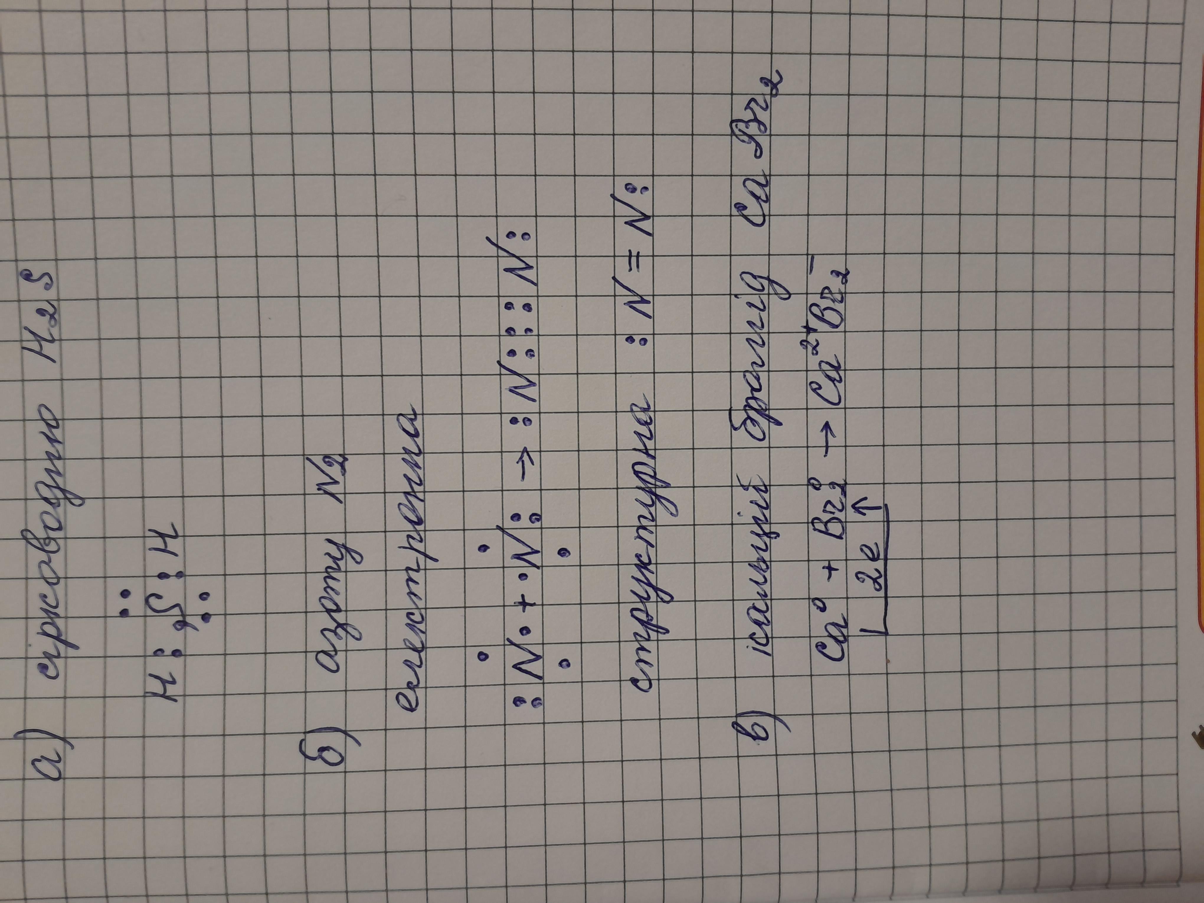 Напишіть електронні і графічні ( там де вони є) формули а) сірководню б) азоту в) кальцій броміду