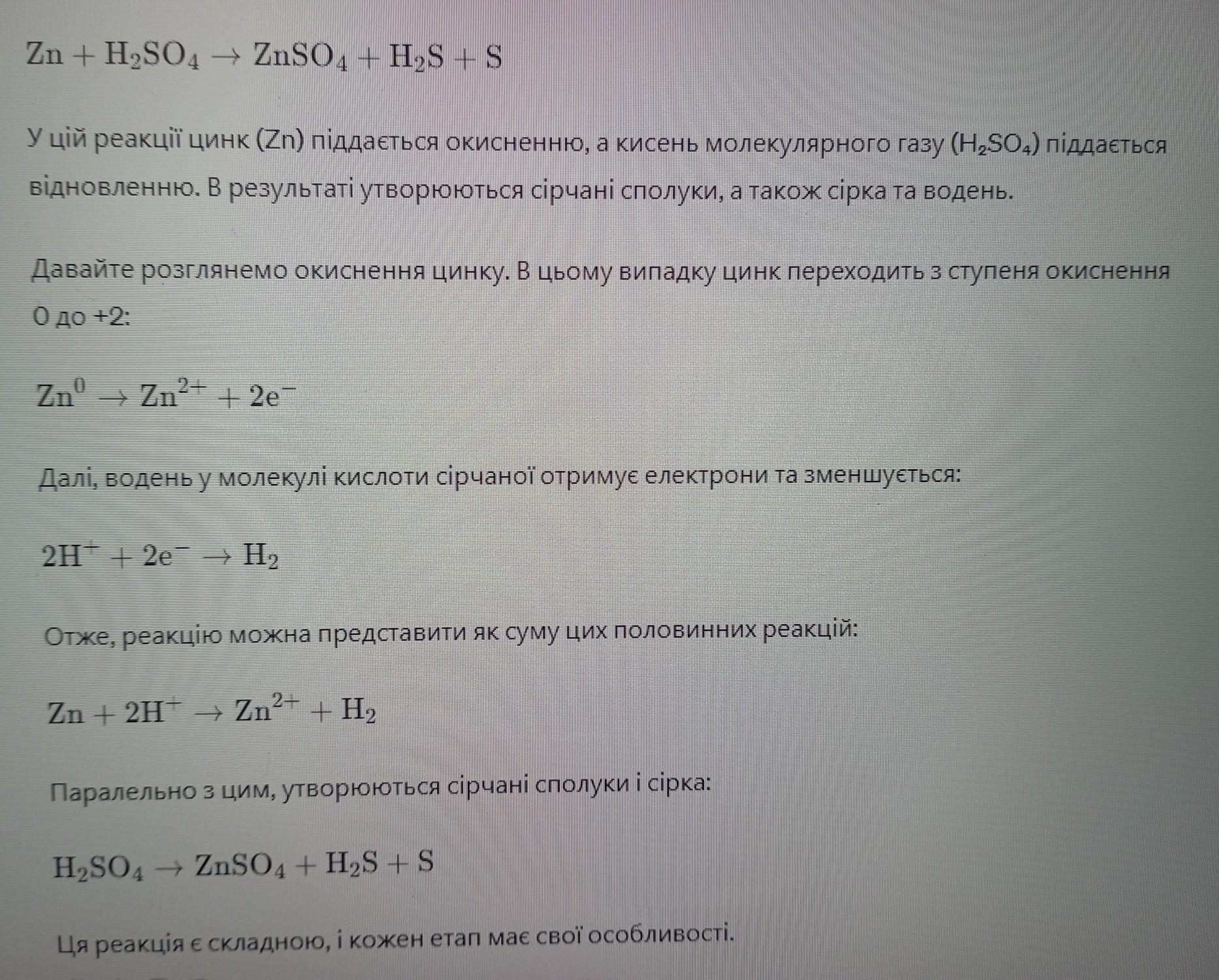 3Zn+4H2SO4=3ZnSO4+S+4H2O