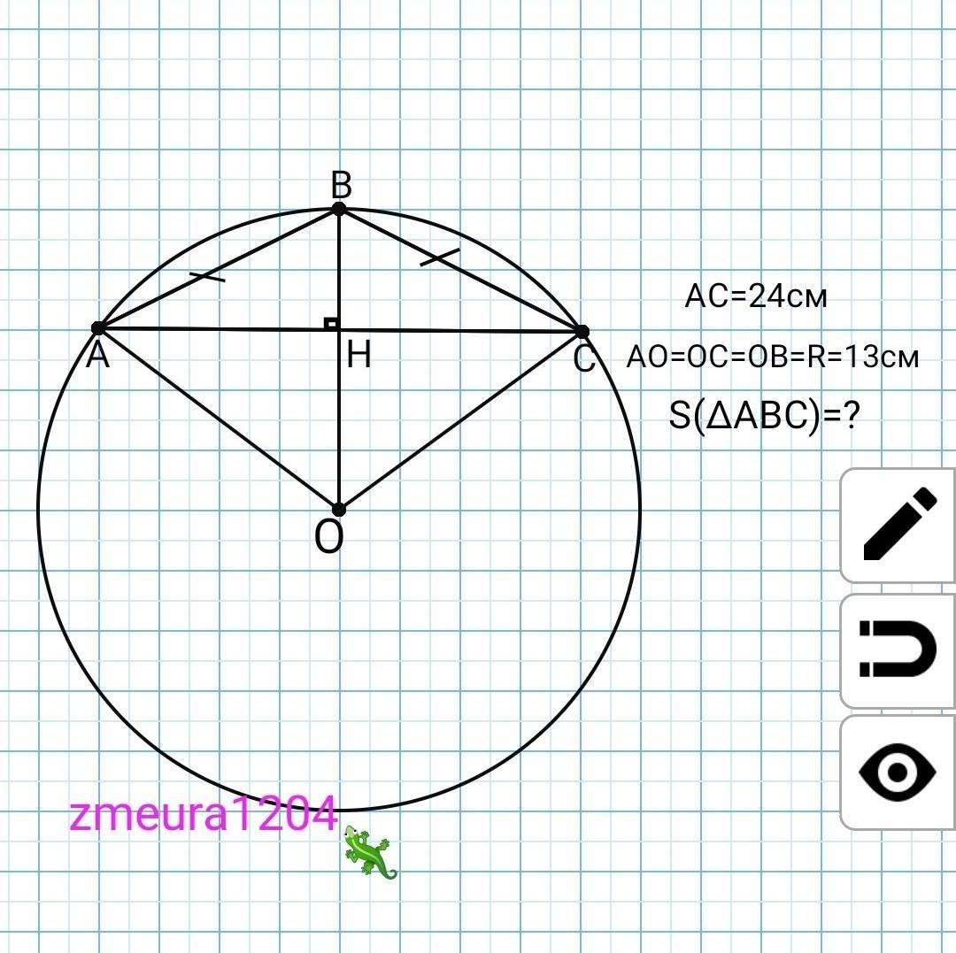Основа рівнобедреного тупокутного трикутника дорівнює 24см,а радіус кола описаного навколо нього -13 см.Знайдіть площу трикутника. Напишіть будь ласка відповідь разом з поясненням там малюнком.