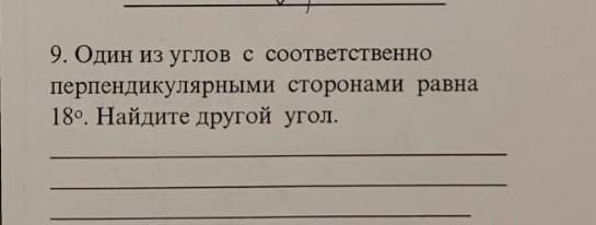 9. Один из углов с соответственно перпендикулярными 18°. Найдите другой угол. ПЖЖЖЖЖЖЖ СРОЧНО ДАМ 30 БАЛОООВВВ УМАЛЯЮЮЮ