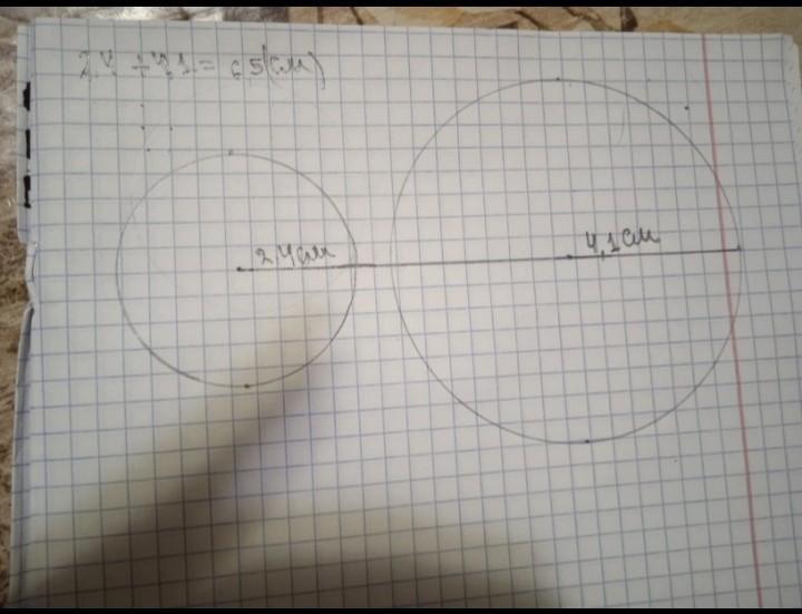 1. Досліди, як будуть розміщені на площині два кола, якщо радіус пер - другого помогою рисунка. 3 см, а відстань між центрами кіл — 7,5 см. Подай відпо - змалюнком