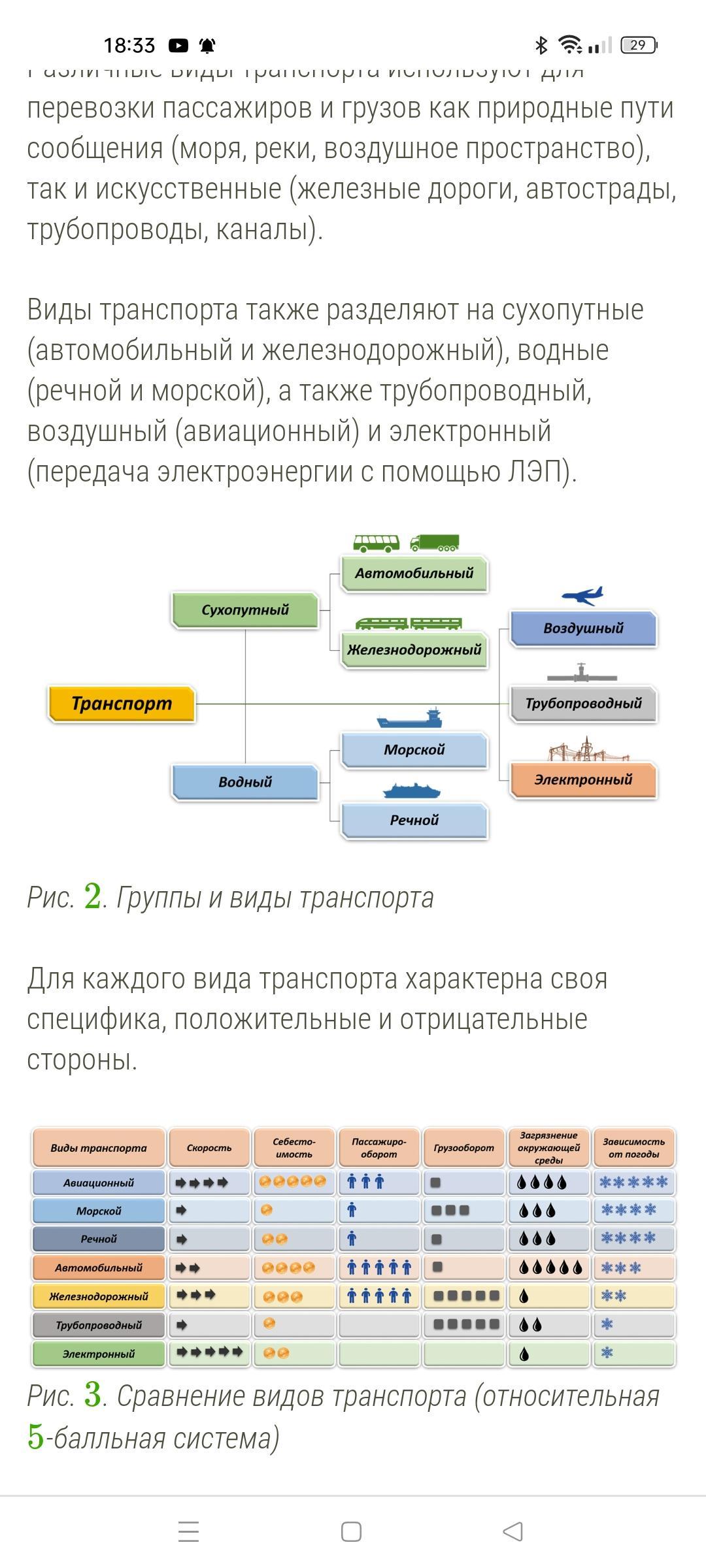 География, 9 класс. Степень распространения транспорта: авиационного (воздушного) , железнодорожного, автомобильного, морского, внутреннего водного.