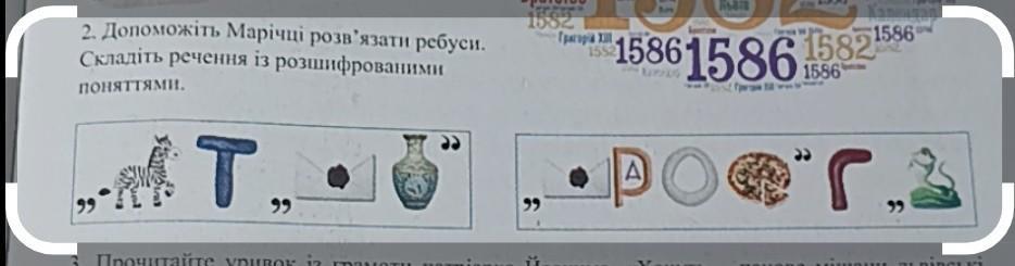 2. Допоможіть Марічці розв'язати ребуси. Складіть речення із розшифрованими поняттями. СРОЧНО!!!!!!!!!