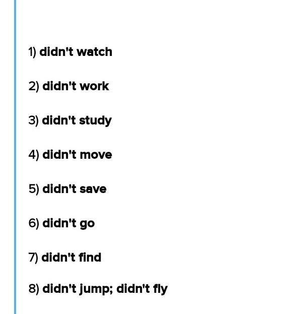 2. Choose the correct options. 1) He didn't work / worked as an actor when he was young. 2) We didn't enjoy /enjoyed doing work experience last weekend. 3) My parents didn't travel/travelled to the office by car on Monday. 4) Juan didn't earn/earned a lot of money working last summer. 5) The café didn't open/opened at 9 am yesterday. 6) We didn't watch/watched the film last night on TV. 7) Aida didn't/did serve food to the customers in the hotel. даю 20 балов