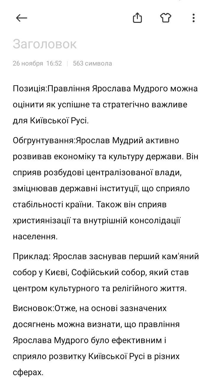 ДЗ: Повторити параграф 7. Використовуючи Метод "Прес" зробити письмовий аналіз правління Ярослава Мудрого за алгоритмом: 1) сформулювати позицію; 2) обгрунтувати її; 3) навести приклад; 4) зробити висновок. Допоможіть будь ласка дуже важливо. Дам 30 балів