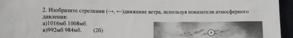2. Изобразите стрелками (-*, --)движение ветра, используя показатели атмосферного давления: а)1016мб 1008мб. в)992мб 984мб. (26) SF пжжжжж