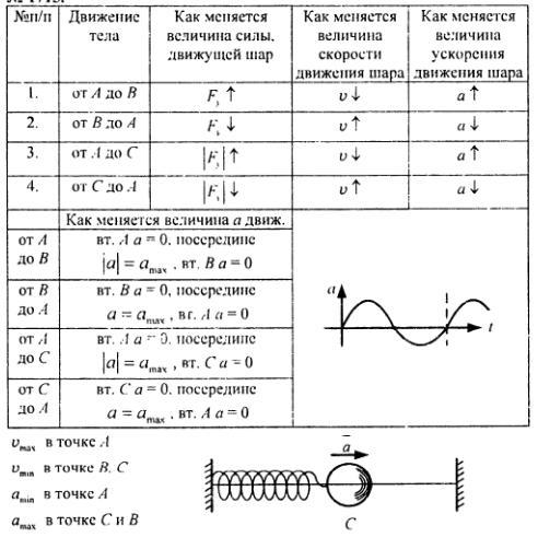 УПРАЖНЕНИЕ 20. 1 Опишите характер движения колеблющегося шара на горизонтально рас- положенной пружине заполнив следующую таблицу: No п/п 1 2 3 4 Движение тела От В до А От А до С От С до А От А до В Как меняется модуль силы, движущей шар Как меняется модуль скорости движения шара