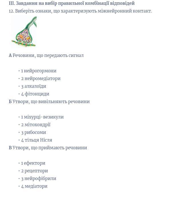ІІІ. Завдання на вибір правильної комбінації відповідей
