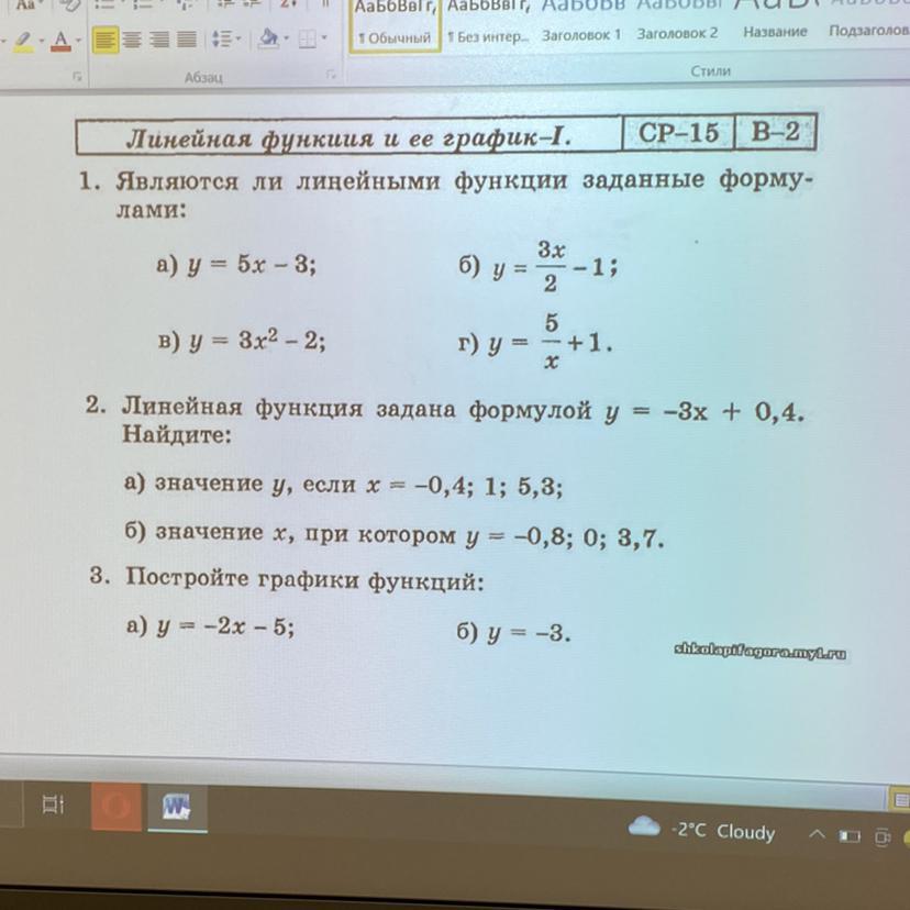 2. Линейная функция задана формулой у = -3x + 0,4.
