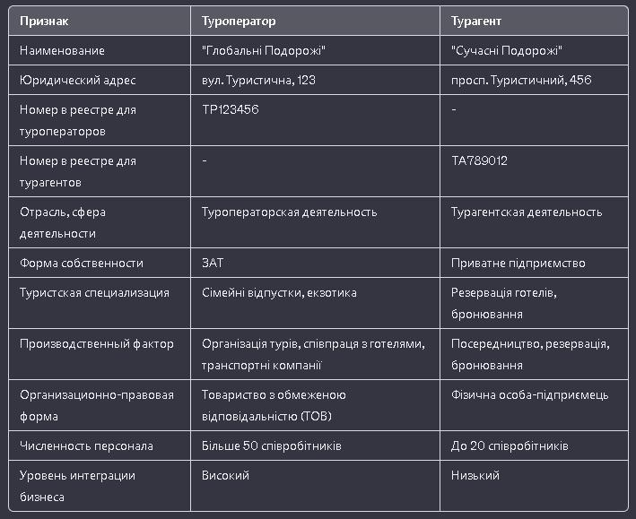 100 БАЛЛОВ Дайте характеристику двум типам туристских предприятий: туроператорской и турагентской фирме (табл.1) по основным признакам (предприятия могут быть реальными или проектируемыми).
