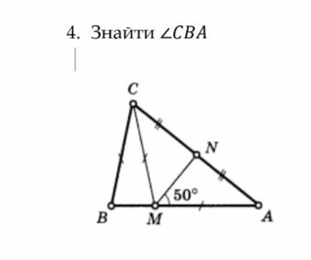<CMN=<NMA=50°, бо ∆CMA рівнобедрений (бічні сторони рівні)