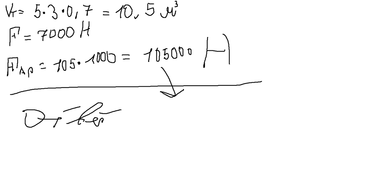 прямоугольный понтон масса которого равна 700 кг имеет длину 5 м ширину 3 м и высоту 0.7 м.Определите осадку понтона без нагрузки.плотность воды примете 1 г/кубический см
