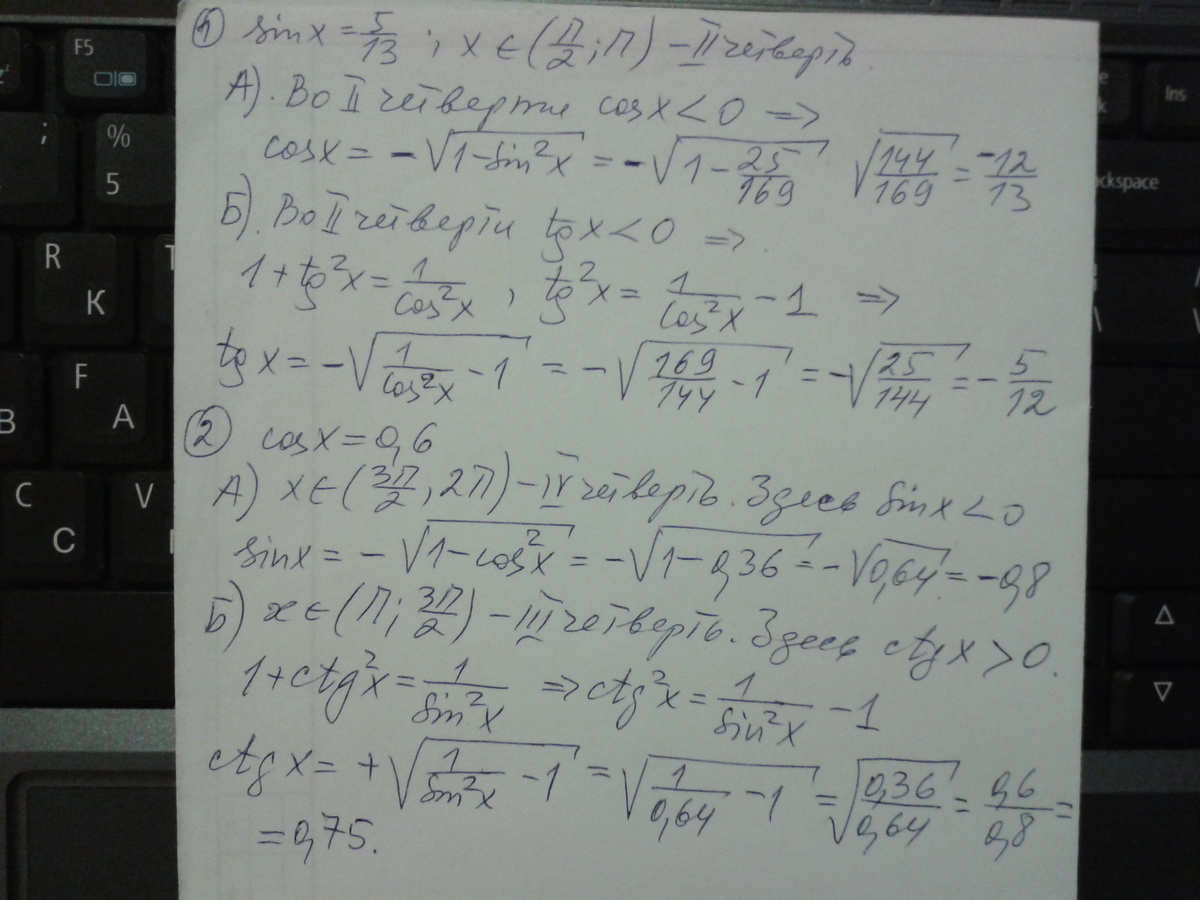 1.Известно что sinх = 5/13 и х є (П/2 ; П)