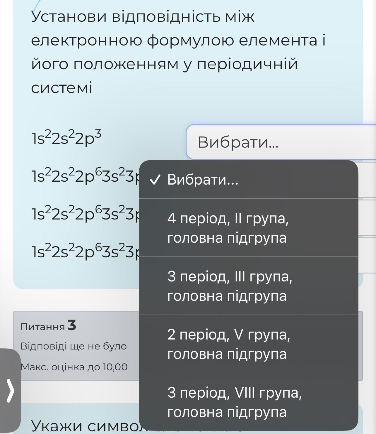 Відповідно до електронної формули 1s^2 * 2s^2 * 2p^3, можна визначити положення елемента в періодичній системі.