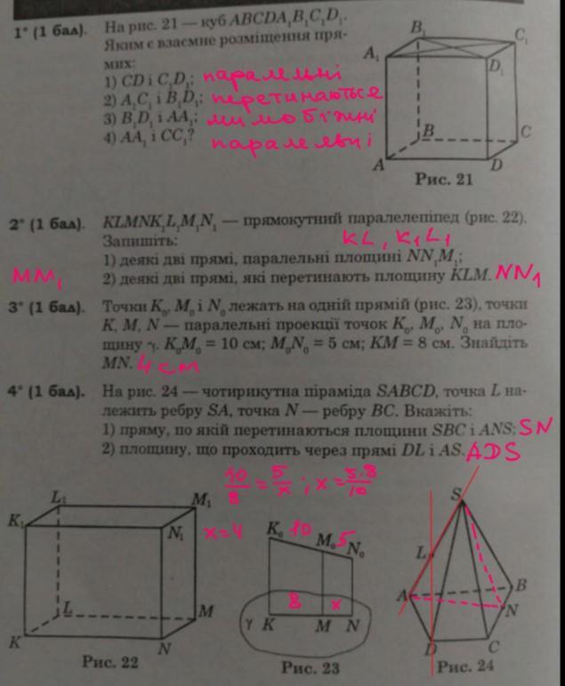 1)паралельні 2) перетинаються 3) перетинаються 4)паралельні