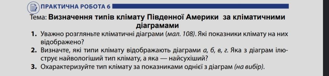 3. Охарактеризуйте тип клімату за показниками однієї з діаграм (на вибір).