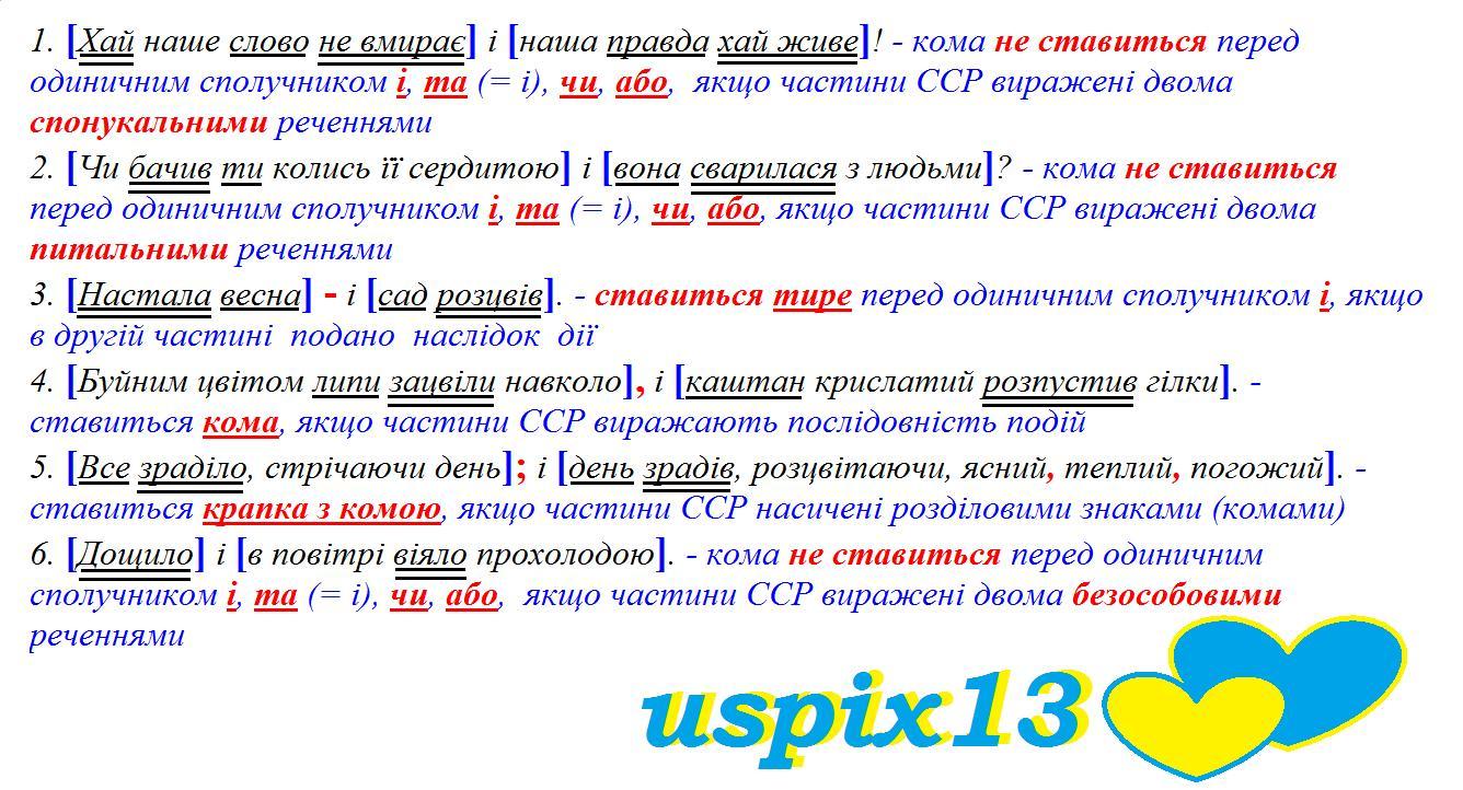 Хай наше слово не вмирає і наша правда хай живе! 2. Чи бачив ти колись її сердитою і вона сварилася з людьми? з. Настала весна і сад розцвів. 4. Буйним цвітом липи зацвіли навколо і каштан крислатий розпустив гілки. 5. Все зраділо, стрічаючи день і день зрадів, розцвітаючи, ясний теплий погожий. 6. Дощило і в повітрі віяло