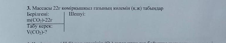 Массасы 22г көмірқышқыл газының көлемін (қ.ж) табыңдар
