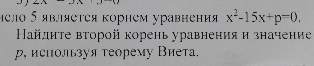 3. Число 5 является корнем уравнения x--15x+p=0. Найдите второй корень уравнения и значение р, используя теорему Виета