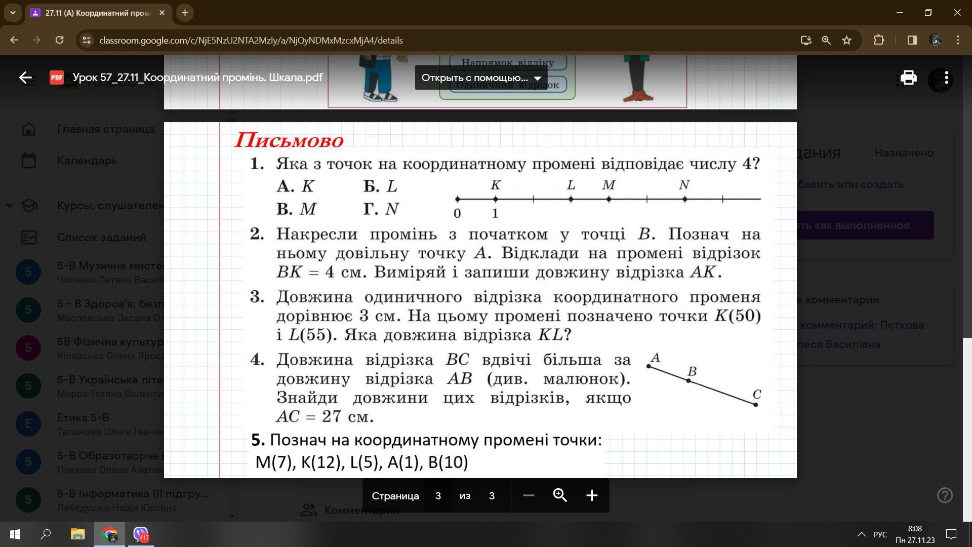 2. Нехай точка А знаходиться на промені В. Якщо відкласти відрізок ВК = 4 см, то довжина відрізка АК буде 4 см.