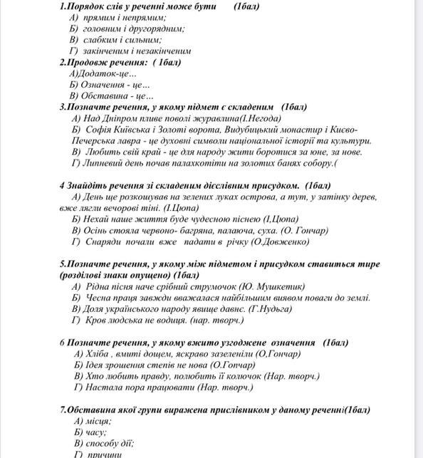 3.Позначте речення, у якому підмет є складеним (1бал)