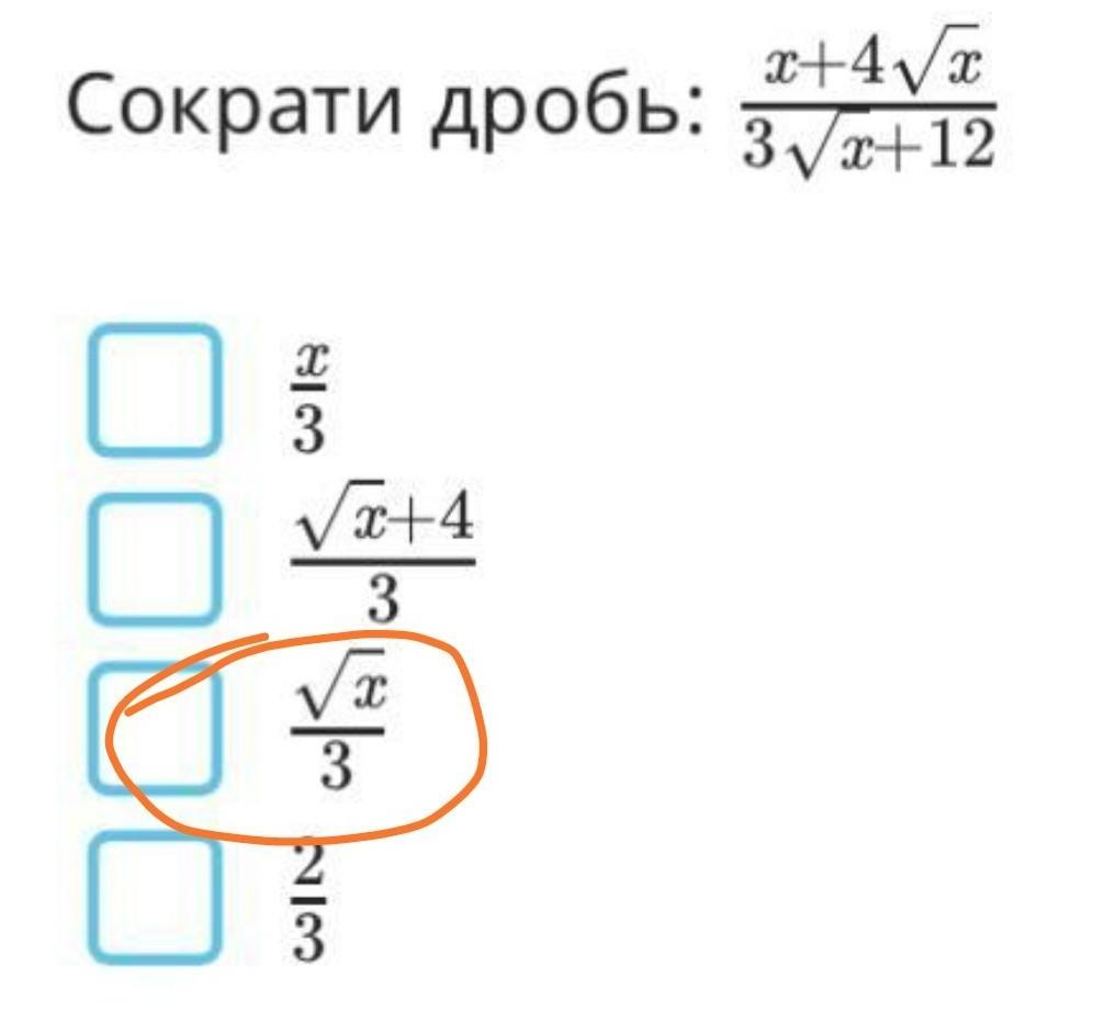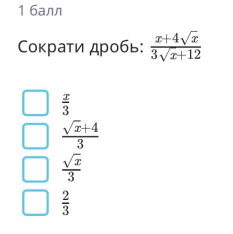 ( х + 4√х )/( 3√х + 12 ) = (√х * (√х + 4) )/( 3(√х + 4) ) = √х/3